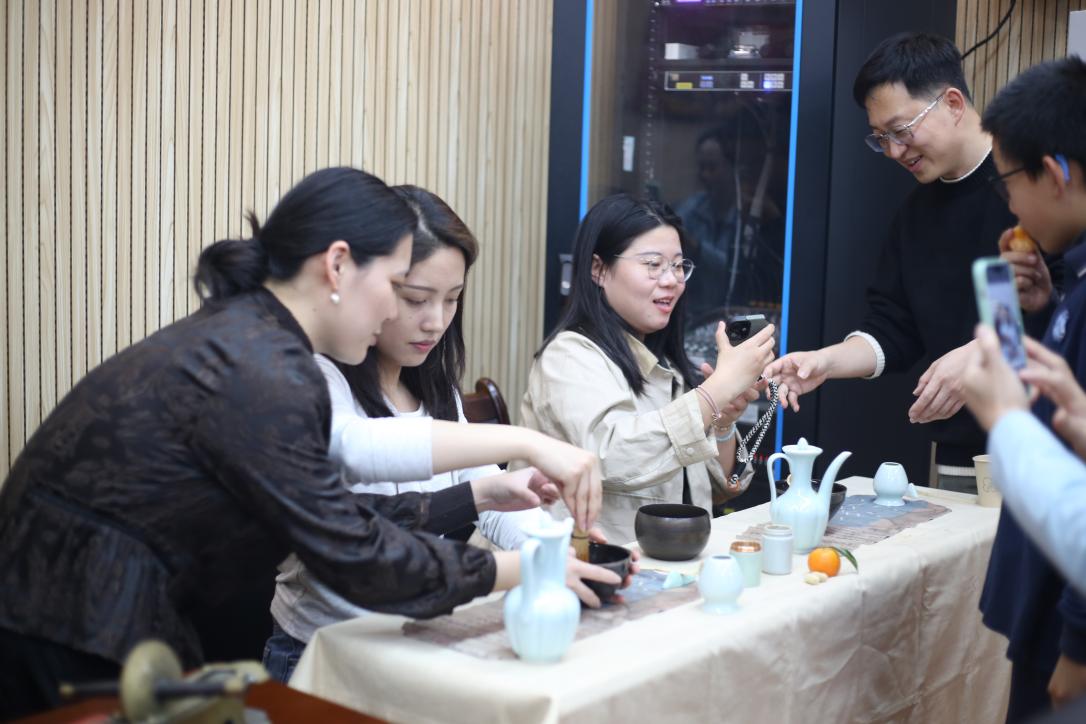 茶艺区则成为老师们的钟爱之地。茶艺师陈晓琦亲临现场,手把手指导大家茶艺技巧。温杯、置茶、注水、出汤,每一个步骤都讲解细致,老师们认真效仿,在袅袅茶香中体悟茶道的宁静雅致,交流品茶心得,于清冽茶汤中感受传统文化的温润力量。